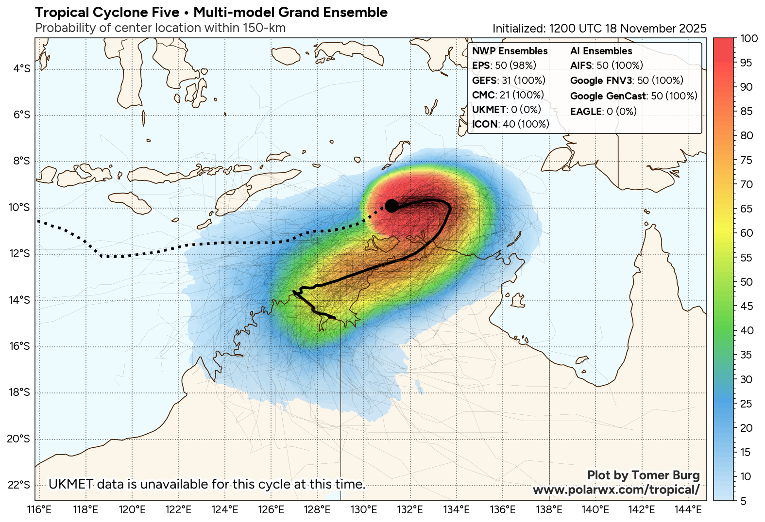 Check out the full ensemble viewer, with more ensemble suites (both NWP and AI models) plus ensemble tracks colored by MSLP: