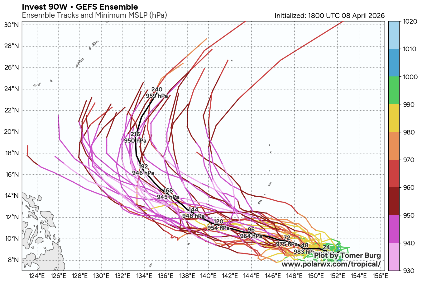 Check out the full ensemble viewer, with more ensemble suites (both NWP and AI models) plus ensemble tracks colored by MSLP: