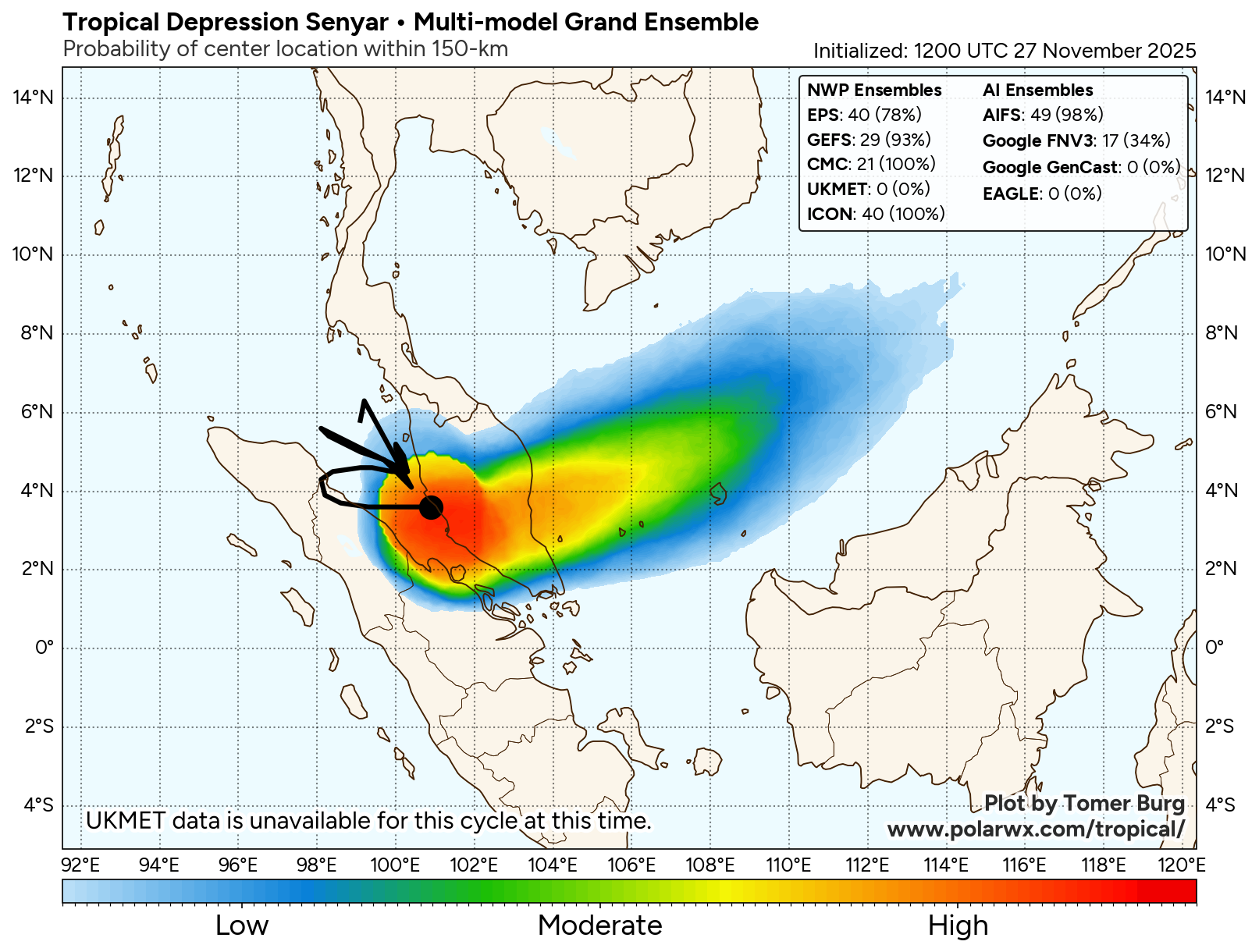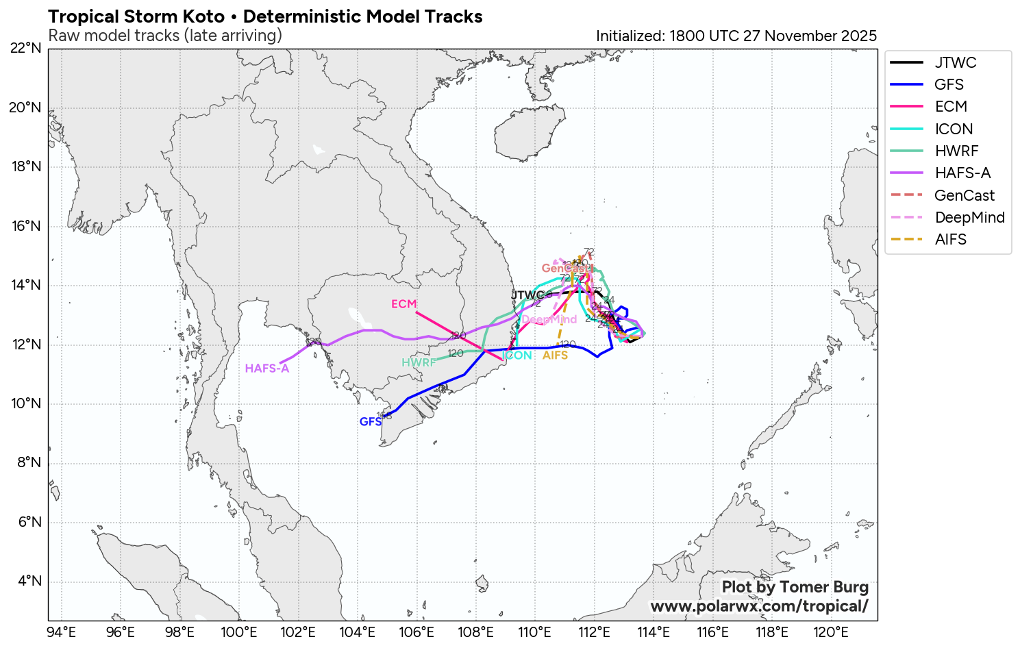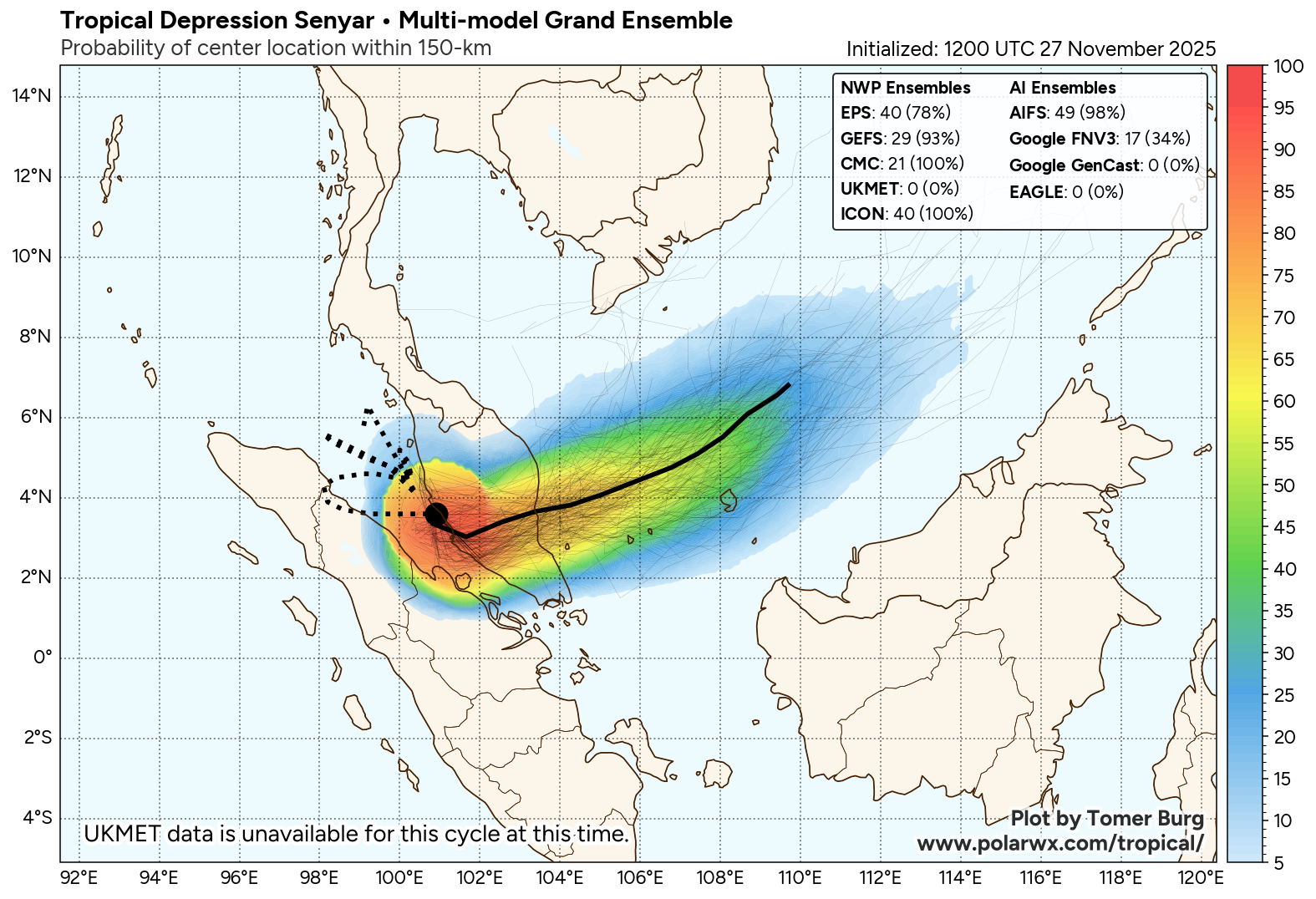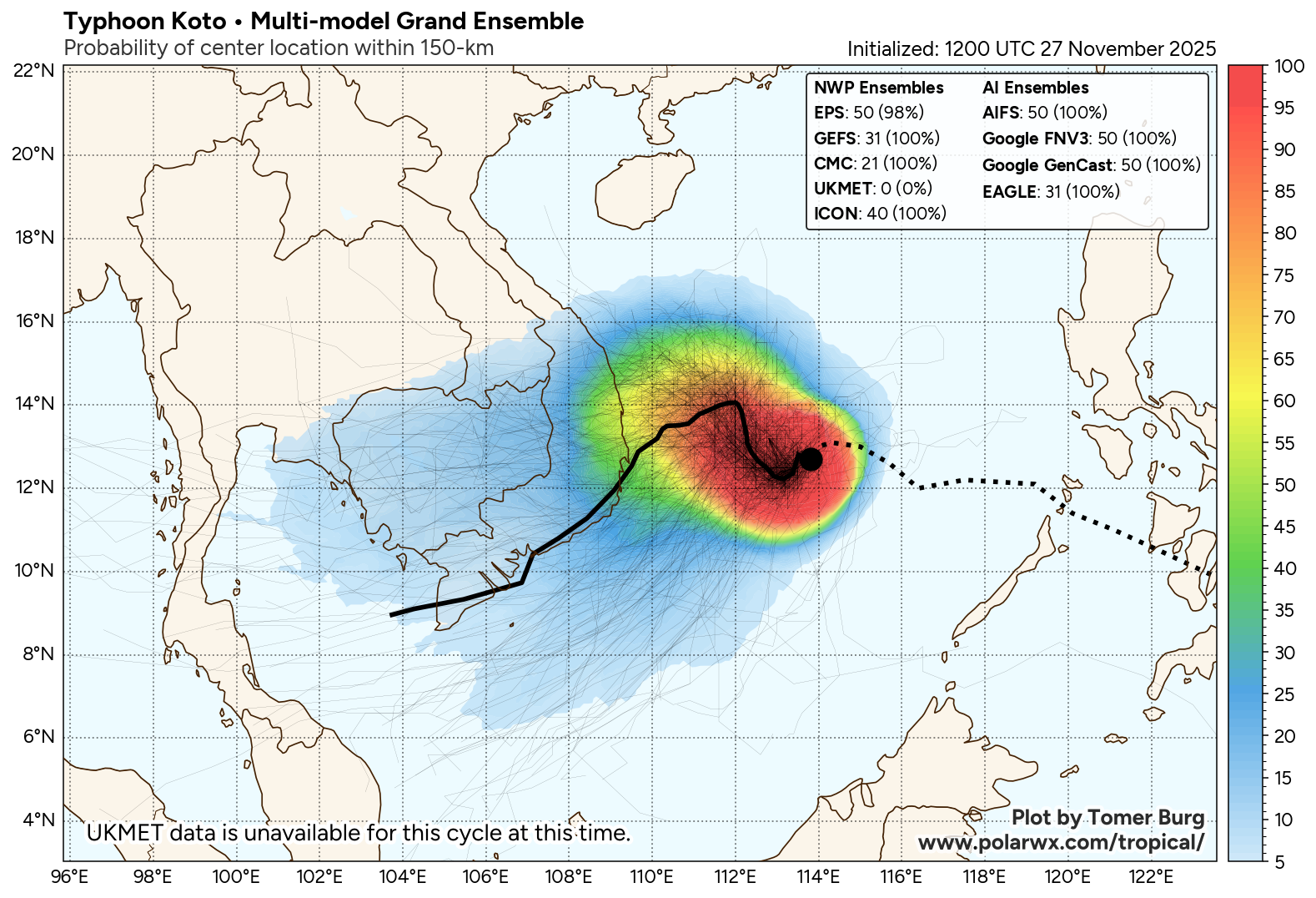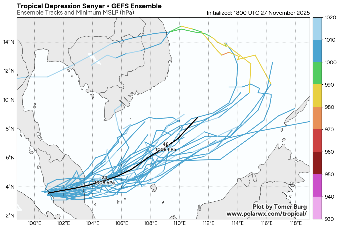 Check out the full ensemble viewer, with more ensemble suites (both NWP and AI models) plus ensemble tracks colored by MSLP: