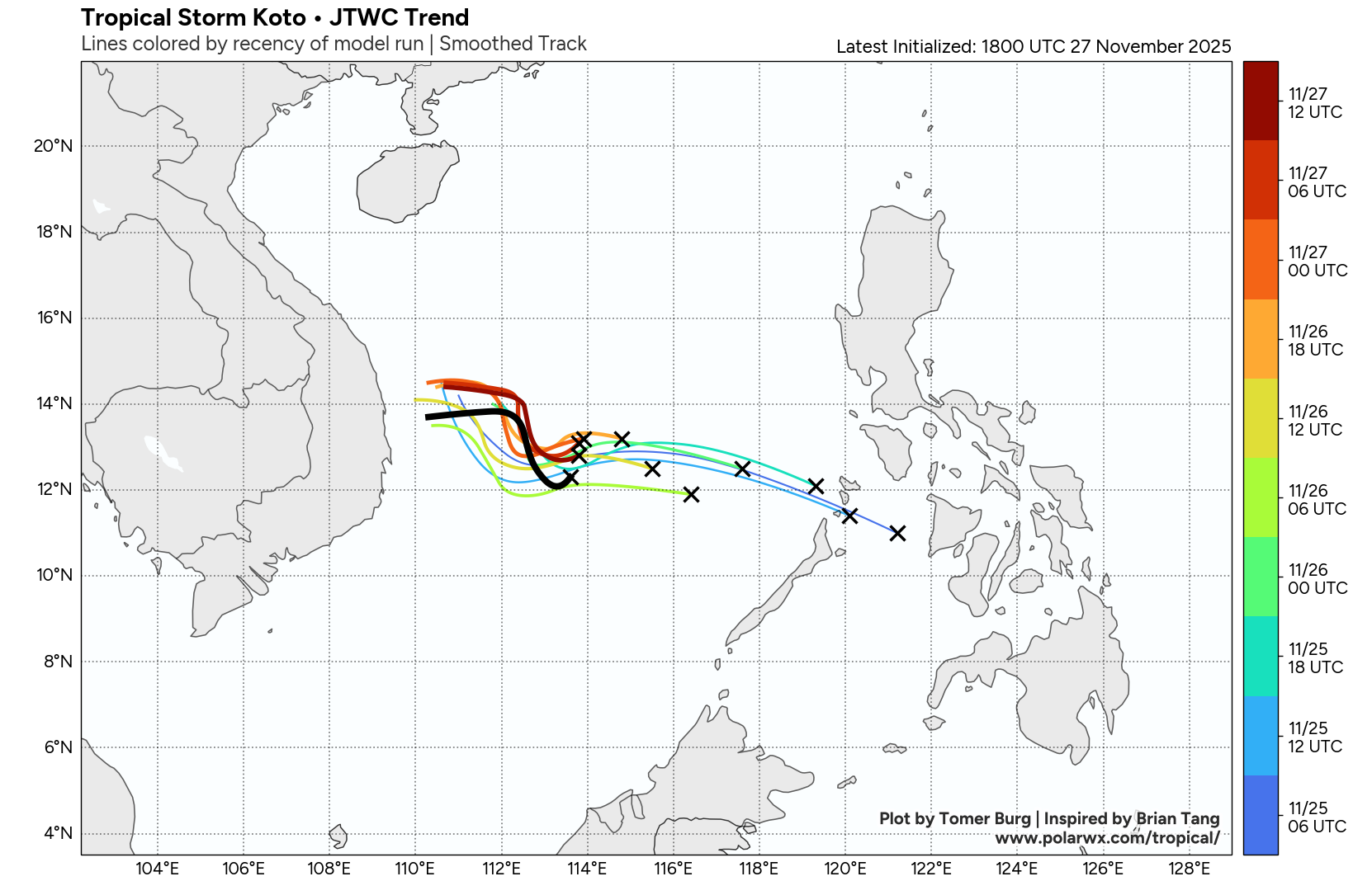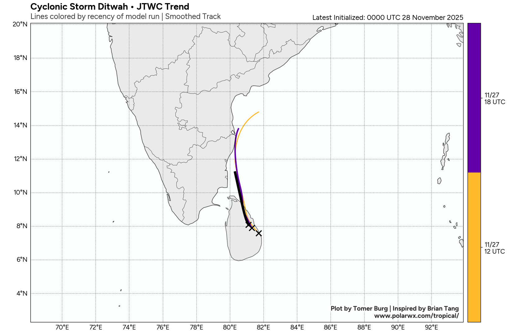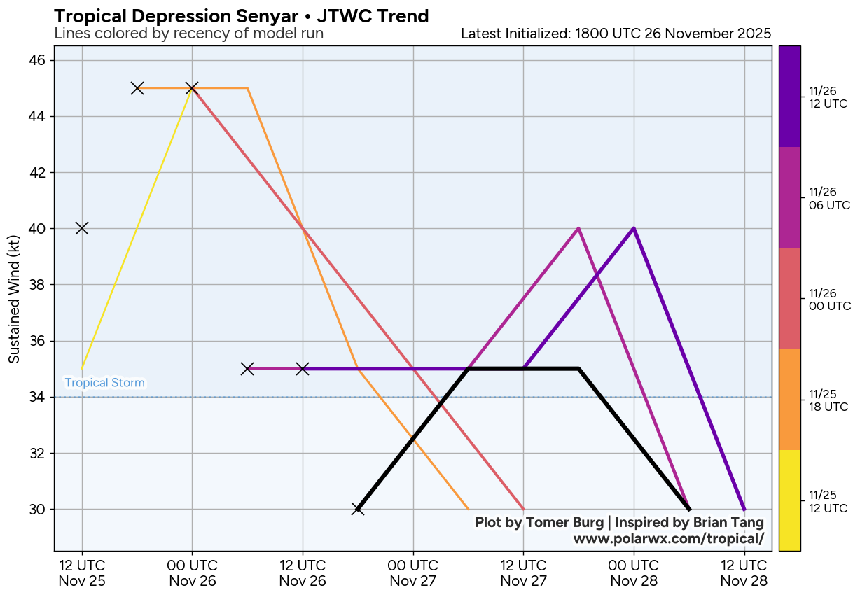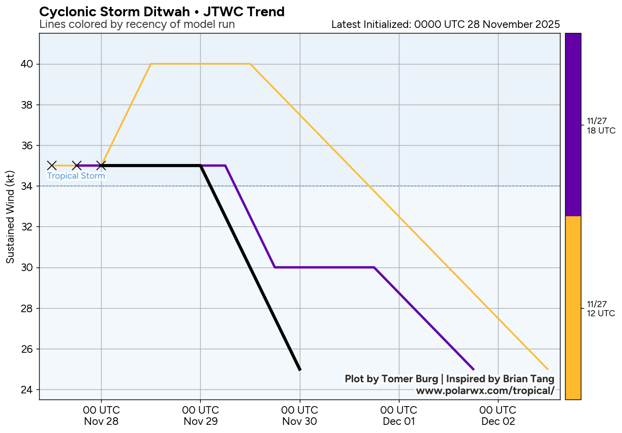 This page displays active tropical cyclones and invests, updated automatically using the Tropycal python package. Data is available courtesy of