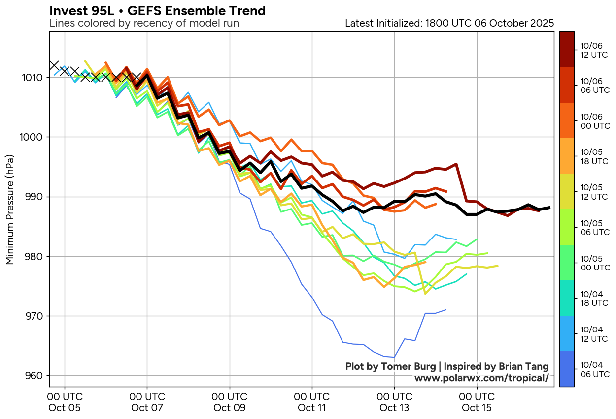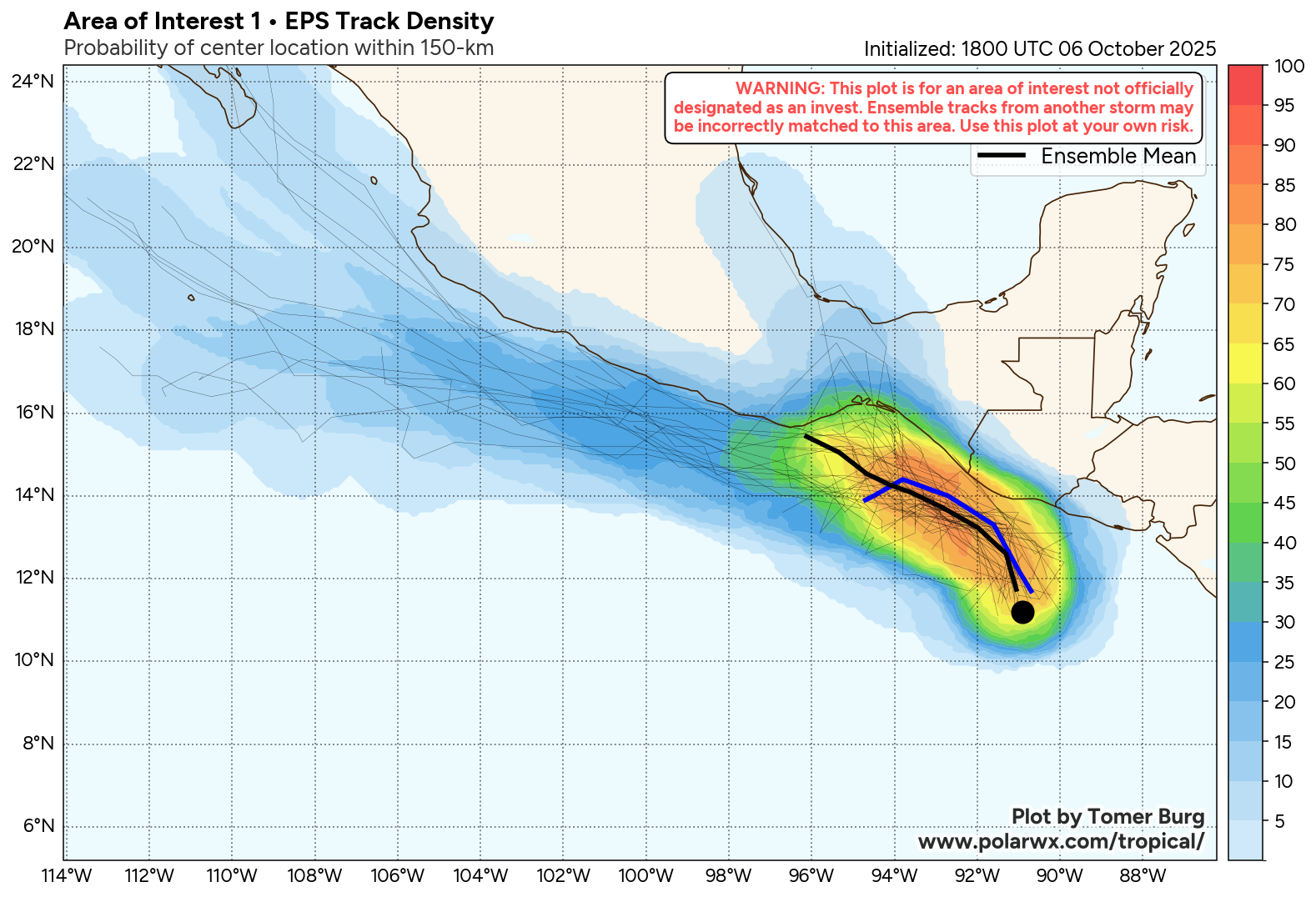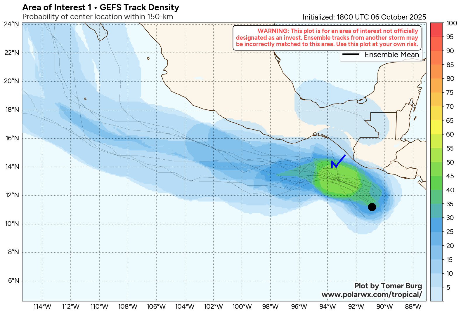 A trough of low pressure currently moving across the Yucatan Peninsula is expected to emerge into the Bay of Campeche during the day on Tuesday. The system is producing a large area of disorganized showers and thunderstorms, and some slow development of this system is possible over the Bay of Campeche before it moves inland by the middle portion of this week. Regardless of development, areas of heavy rain and gusty winds are likely across portions of the Yucatan Peninsula, Belize, and southern Mexico during the next few days.