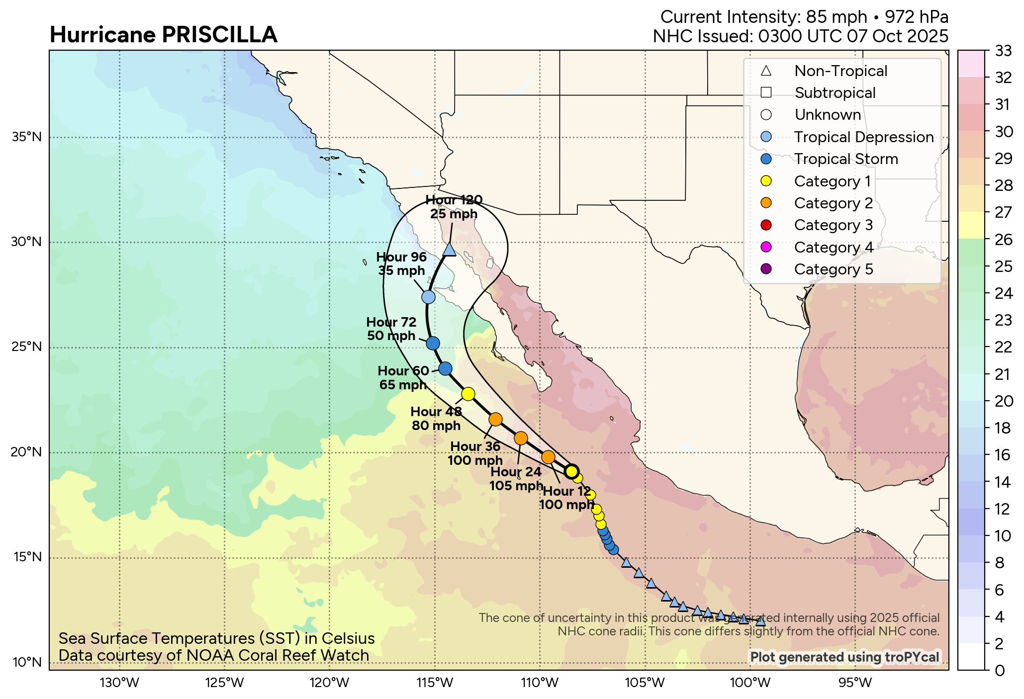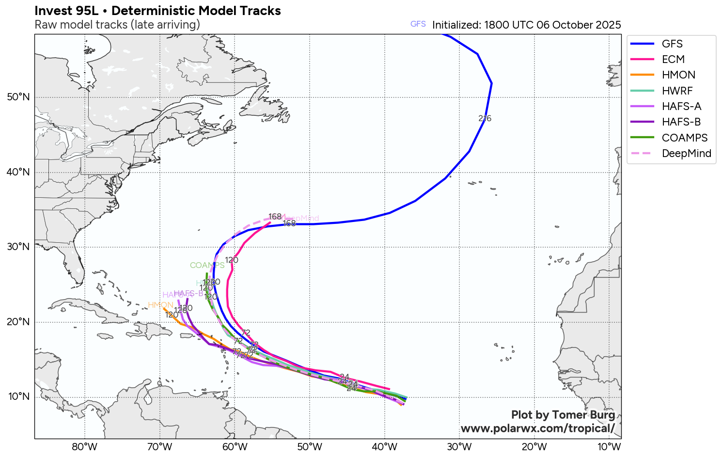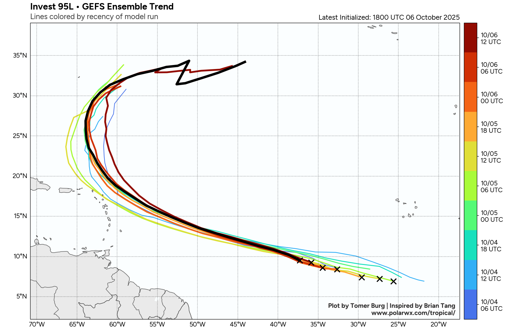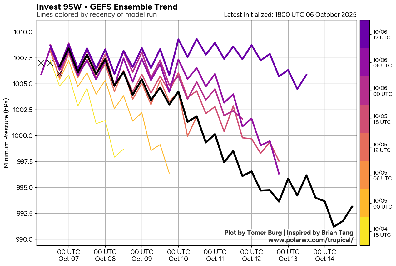 A trough of low pressure currently moving across the Yucatan Peninsula is expected to emerge into the Bay of Campeche during the day on Tuesday. The system is producing a large area of disorganized showers and thunderstorms, and some slow development of this system is possible over the Bay of Campeche before it moves inland by the middle portion of this week. Regardless of development, areas of heavy rain and gusty winds are likely across portions of the Yucatan Peninsula, Belize, and southern Mexico during the next few days.