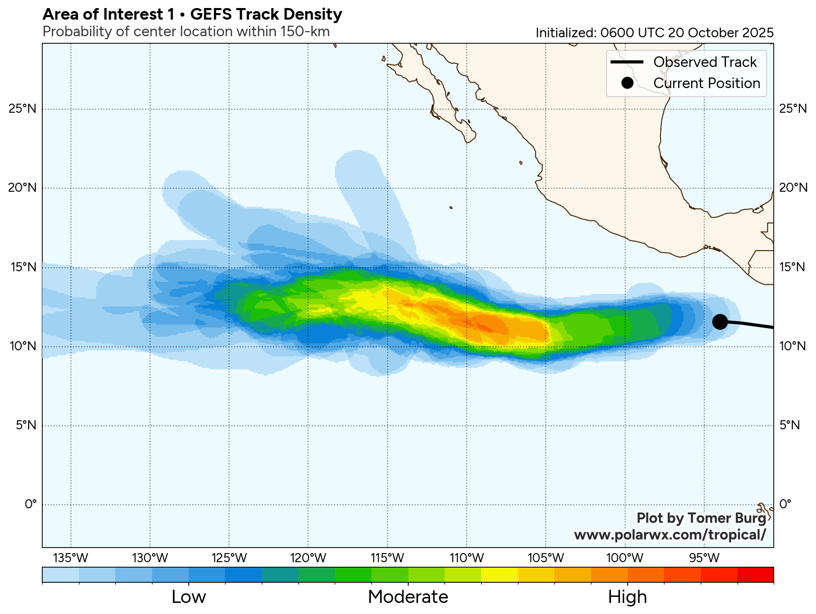 Maximum sustained surface winds are estimated at 18 to 23 knots. Minimum sea level pressure is estimated to be near 1006 mb. The potential for the development of a significant tropical cyclone within the next 24 hours is upgraded to medium.