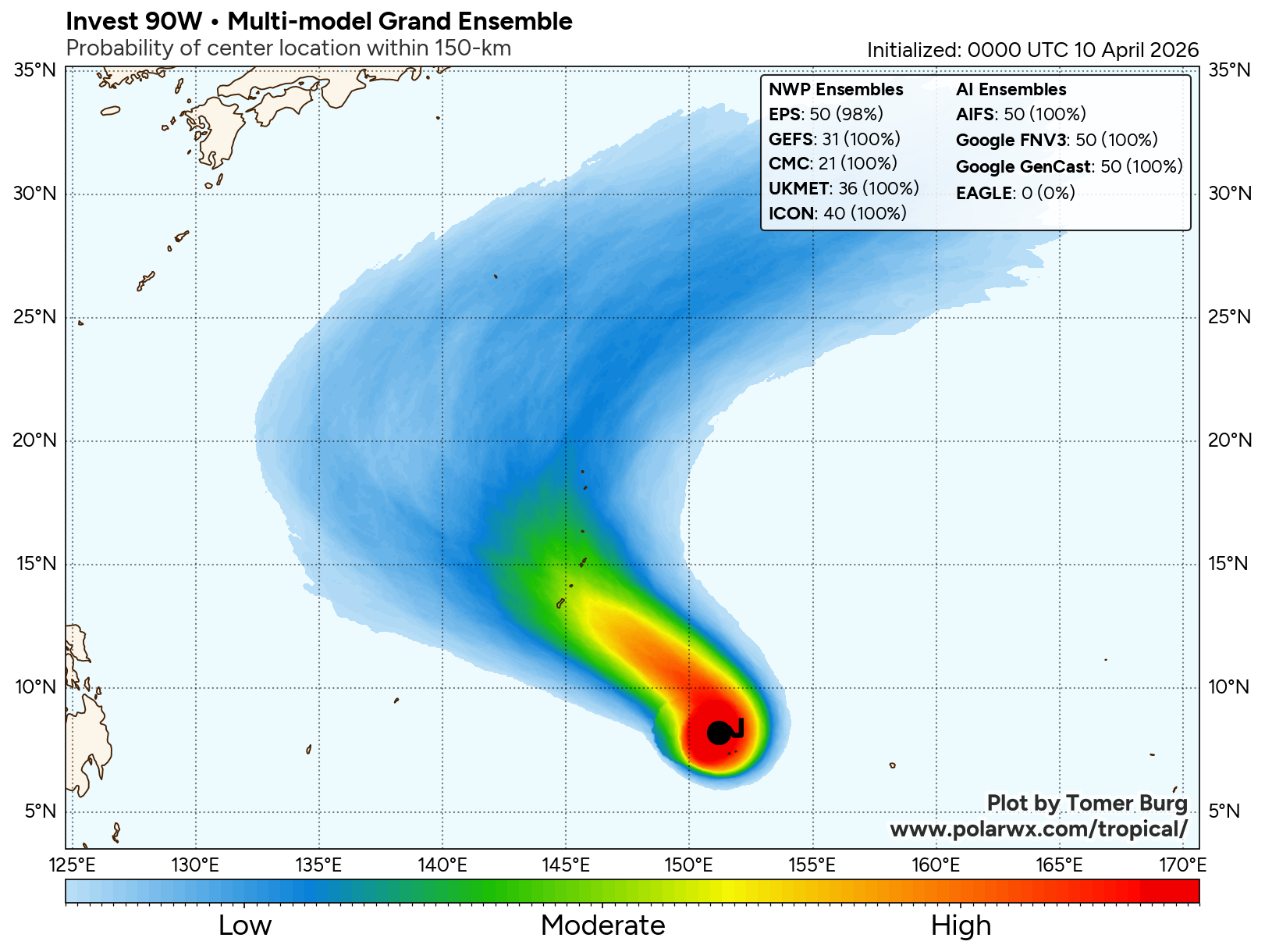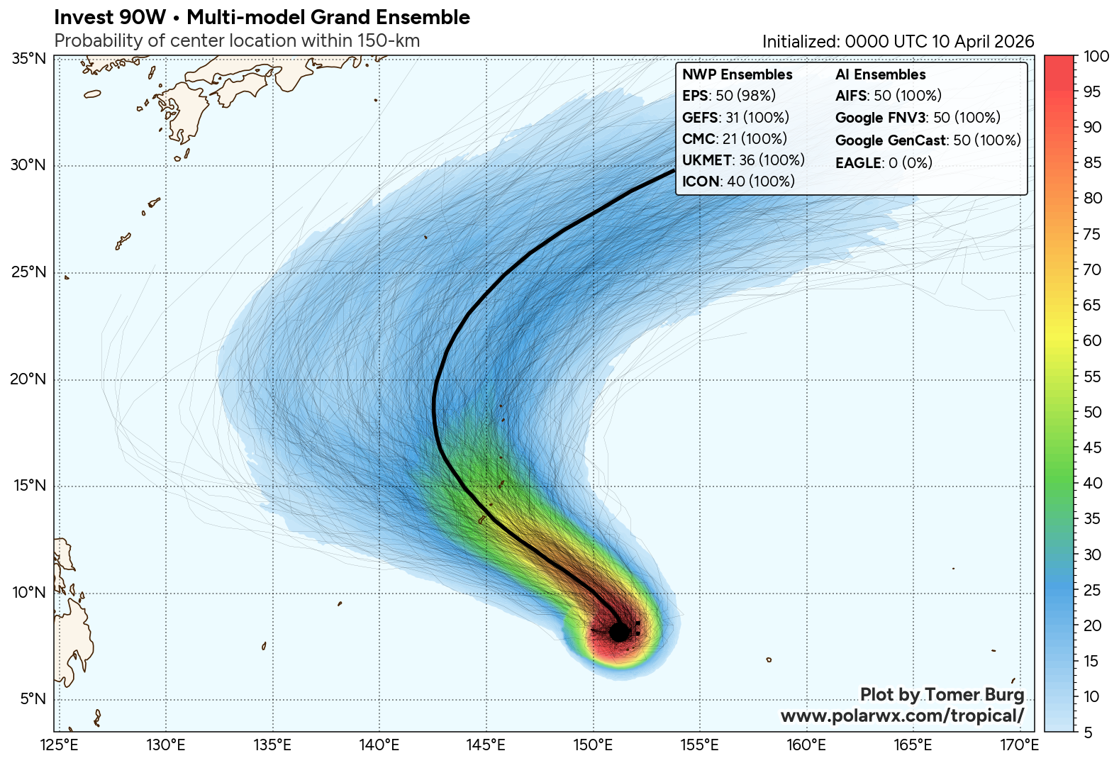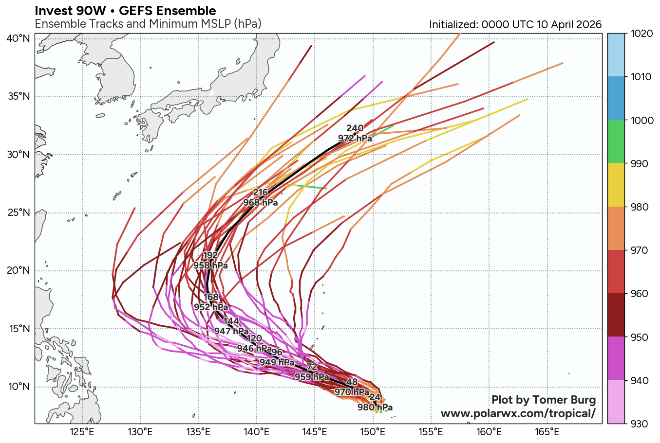 Check out the full ensemble viewer, with more ensemble suites (both NWP and AI models) plus ensemble tracks colored by MSLP: