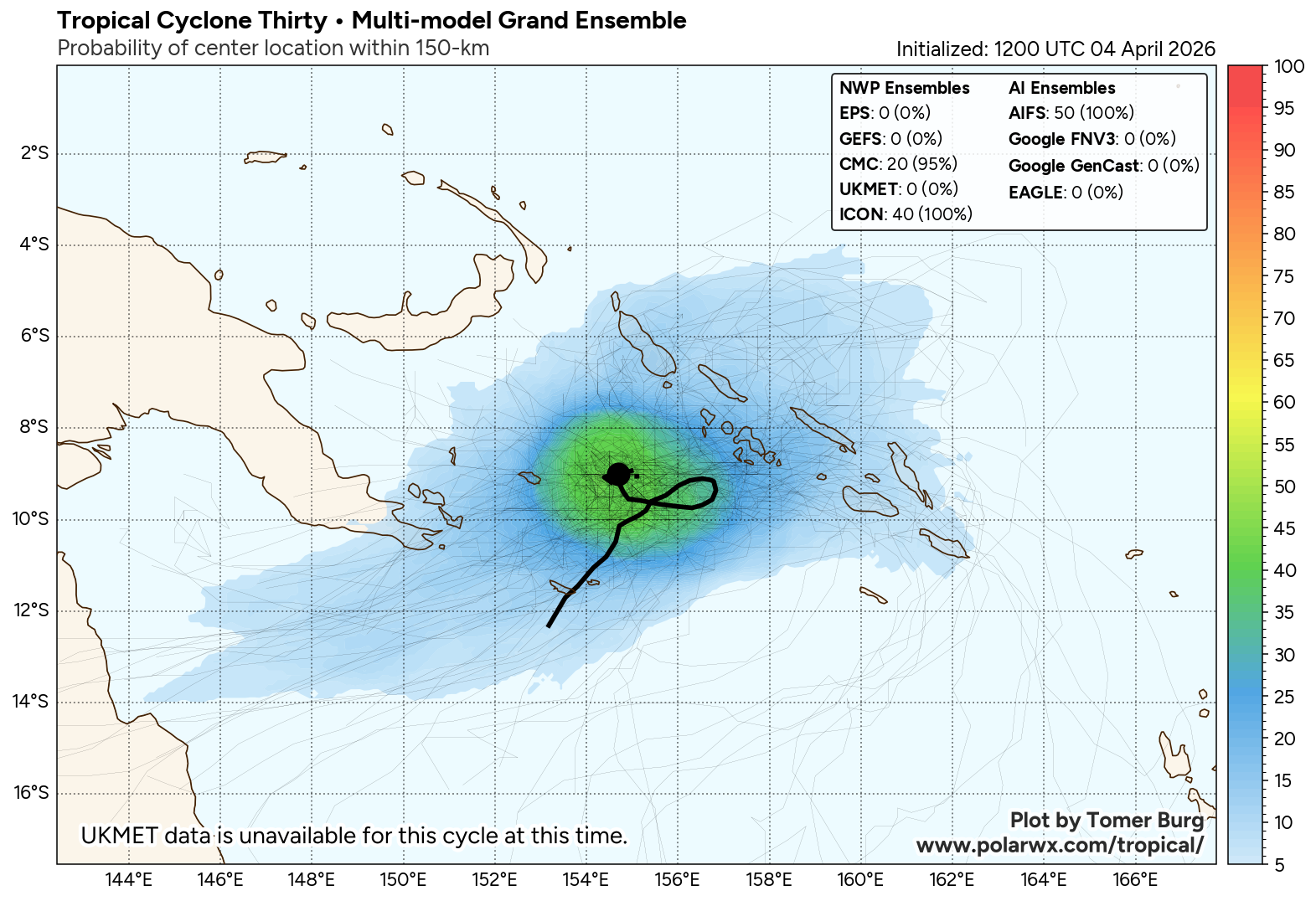 Check out the full ensemble viewer, with more ensemble suites (both NWP and AI models) plus ensemble tracks colored by MSLP:
